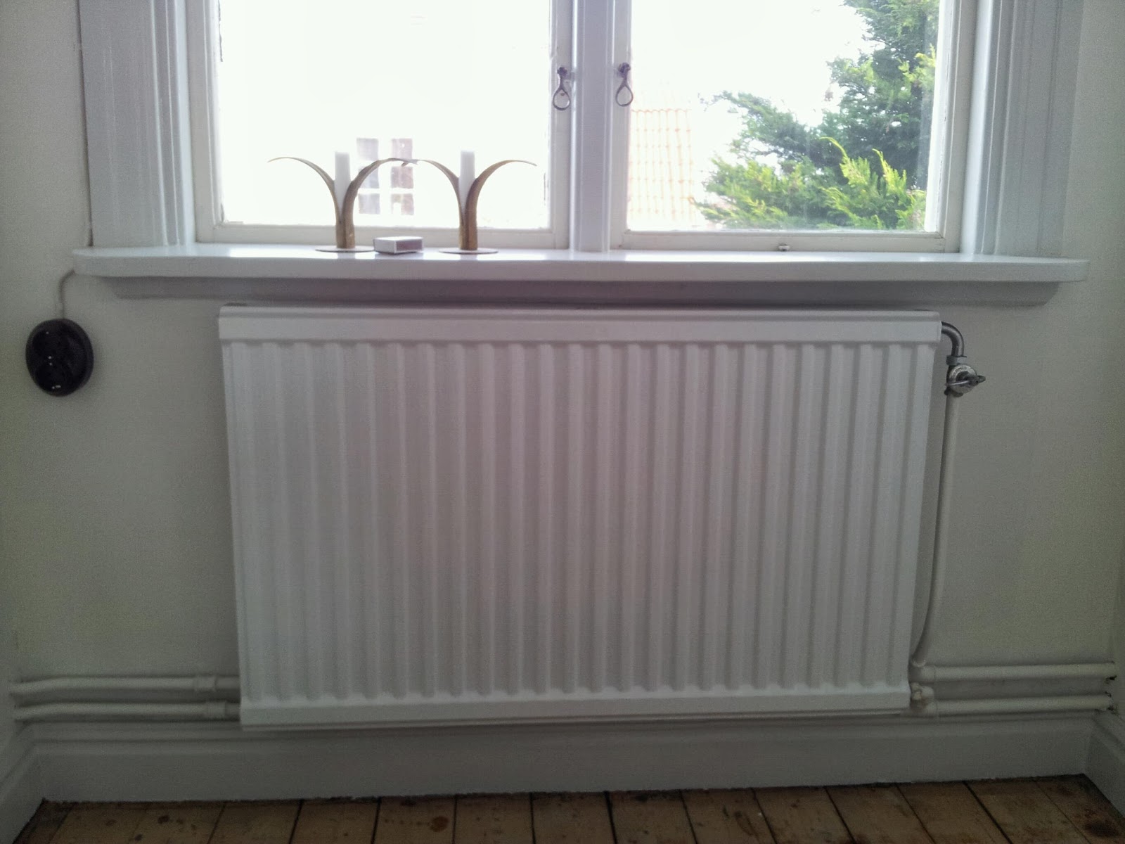 Vi kom på att dessa behövde åtgärdas i grevens tid, eftersom demontering av element kräver att hela centralvärmen slås av. Detta, i kombination med att flertalet fönster på nedervåningen var iväg för renovering, ledde till att inomhustemperaturen under ett par veckor i början av oktober var väldigt snarlik utomhustemperaturen just då. Vi tröstade oss med att kakelugnarna nog skulle hålla oss varma, vilket de för all del gjorde till en del... men inte riktigt tillräckligt måste jag nog erkänna.